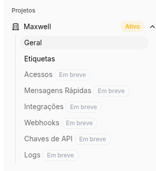 Acesse o seu Projeto no BeeMessage e logo após, Vá em Configurações do Projeto.