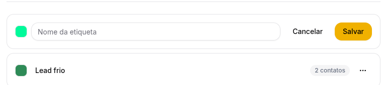 Digite o nome e cor da etiqueta (ex.: Leads, Clientes, Inativos, Orçamento, etc.).